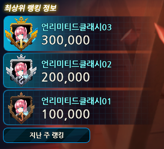 - 매주 토요일 2시까지 해당 던전을 클리어한 기록을 기준으로 매주 토요일 4시 랭킹 정산 완료 후 '지난 주 랭킹' 화면에서 랭킹 보상을 수령할 수 있습니다.