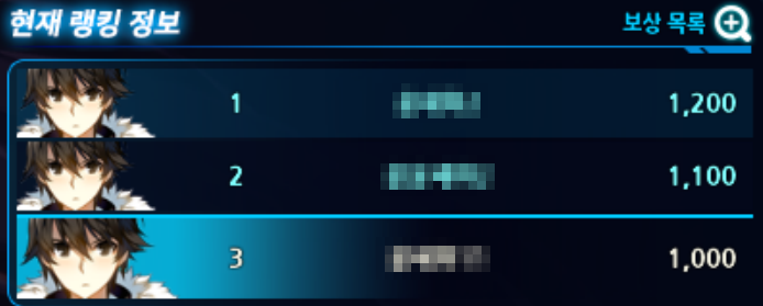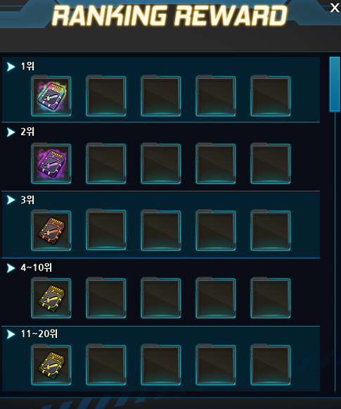 - [보상 목록] 버튼 클릭 시, 랭킹에 따른 보상 목록이 표시됩니다.