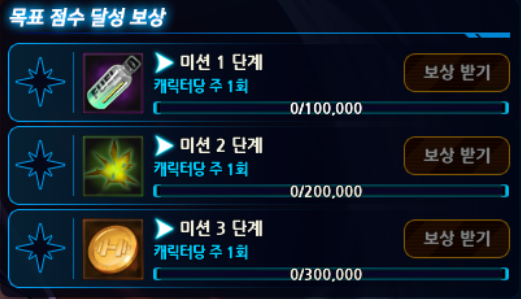 - ‘목표 점수 달성 보상’에는 일정 점수 달성 시 획득 가능한 보상이 표시됩니다.