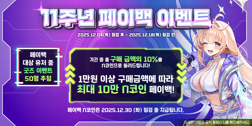 2025년 12월 4일 업데이트 후 11주년 기념 페이백 이벤트가 시작됩니다!