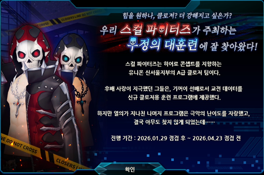 - 선배 클로저 ‘스컬 파이터즈’가 준비한 다양한 전투 훈련을 경험해보세요!