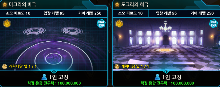 - 일부 던전을 클리서 시 PNA 경험치를 획득할 수 있습니다.