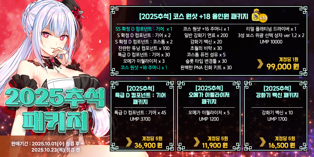 2025년 10월 1일 업데이트 후 추가되는 ‘2025추석 패키지’ 상품 관련하여 안내드립니다.