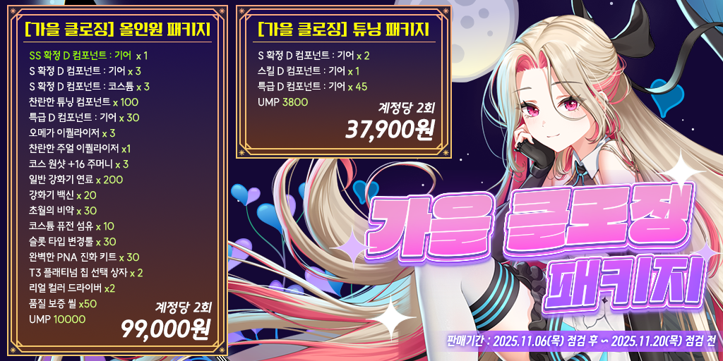 2025년 11월 6일 업데이트 후 추가되는 ‘가을 클로징 패키지’ 상품 관련하여 안내드립니다.