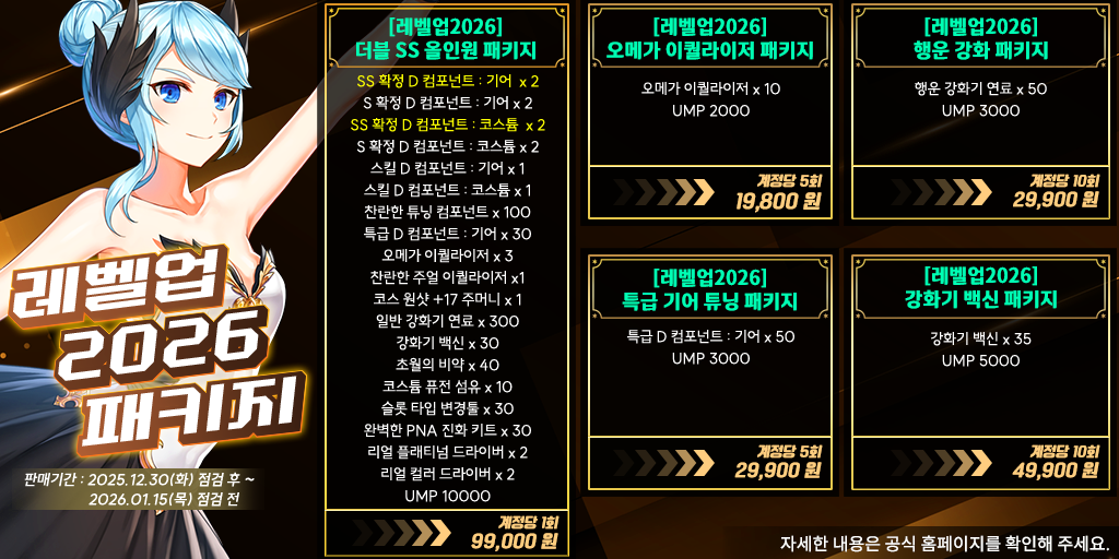 2025년 12월 30일 점검 후 추가되는 ‘레벨업2026 패키지’ 상품 관련하여 안내드립니다.