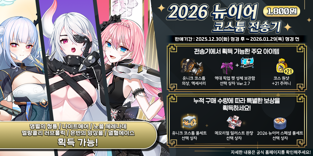 2025년 12월 30일 점검 후 추가되는 ‘2026뉴이어 코스튬 전송기’ 상품 관련하여 안내드립니다.
