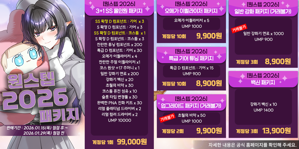 2026년 1월 15일 점검 후 추가되는 ‘원스텝 2026 패키지’ 상품 관련하여 안내드립니다.